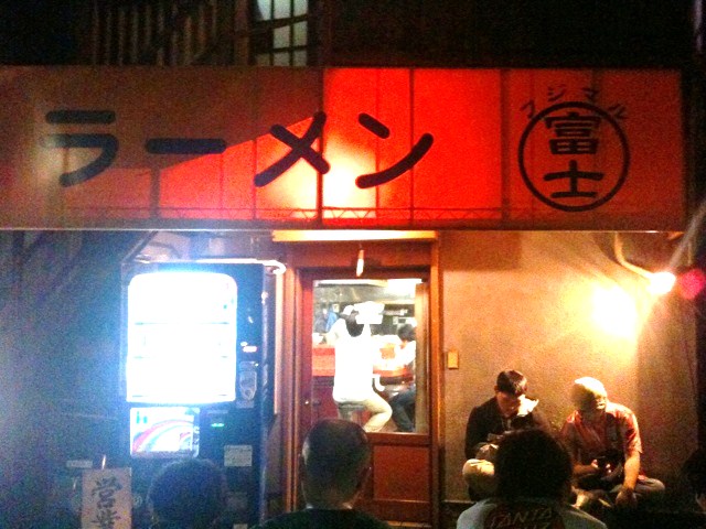 まず衝撃的なのがスープがなみなみに入っておりカウンターが手前に傾いているため、スープがこぼれてくるのでお絞りを丼の手前において防波堤を作ってから食べ始める。見た目はかなり茶色で濃そうなスープだが、口にしてみるとそれほど濃くはなく豚の旨みと甘味があり飲みやすい味。そして二郎系独特の中毒性で癖になる味わい。麺は太くて平たい縮れ麺。他の色々な店舗と比べて強いインパクトがある訳ではないが、硬めで適度な食感と小麦の風味がとてもよく食べやすい麺。見た目ほどは量が多く感じられなかったのは美味いからこそのかもしれない。野菜はかなりしっかりと茹でられたモヤシと少量のキャベツ。シャキシャキとした食感とは異なりしおれた感はがあるが、これはこれで味がしっかりと染みていていい感じ。野菜の上にはほぐし肉が乗り、このほぐし肉と野菜がとてもよく合い一緒に食べるととても良い。この他に野菜の下に塊の肉がゴロゴロといくつかある。部位によって食感や味の染み具合が異なりどれもとても美味しいが、中でもほぐし肉が絶品。あとゆで卵が半分乗るが、これは別に不要かなという印象。ニンニクも追加したつもりだがほとんど感じられなかった。二郎系の中でもかなりの人気店だけあり、食べやすい割りには中毒性のある非常に癖になる一杯だ。 志茂と王子神谷の中間点くらいの大通り沿いにある。駅から歩いたが道中、夜遅めだったため近辺に明かりのついている店舗が少なくて不安になった。店の近くまで来ると行列の多さですぐに店があることが分かる。20人ほどの行列で1時間15分ほどの待ち。行列中は外に置かれたベンチに座って待てるが、間に灰皿が置いてあり前後でタバコを吸われてとても臭かった。店内はカウンター席と座敷席もあるため、家族連れや団体が多いため回転が遅く感じられた。 |