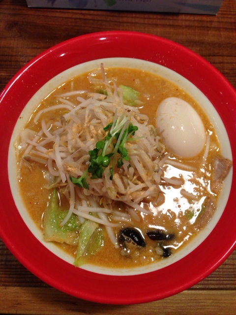濃厚な味噌スープで味はかなりしょっぱめ。この濃さはサービスの半ライス(と言ってもセルフなので量はいくらでも多くできる)があってちょうど良い感じとなる。背脂が入っておりその甘みもあるので食べにくい濃さではない。生姜の風味も効いていて後味も割とサッパリしている。