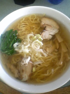 豚骨と鶏がら、それに野菜のやさしい味が煮込まれて、さらに魚介の風味がすっきりと入ってくる。濃厚でどっしりとした出汁の旨みを感じるのだが、すっきりと飲める絶妙のスープ。味付けは塩とも醤油ともとり難い中間的な味で、出汁の旨みを消すことなくうまく引き立てている感じ。私的には「支那そばや」に似た感じがするがそれも凌いでいる。麺はあっさり系のこのスープに対しては珍しい太麺。よく見ると中に1本線が通って芯を残してある絶妙の湯で加減で、もっちりとしながらも粉の味が感じられとってもうまい。具にはチャーシュー、メンマ、ほうれん草、ネギが乗る。チャーシューはあっさり味で少し小ぶりのものが2枚。メンマも薄味でさっくりとした食感。ほうれん草はあっさり感をプラスしてくれてよいアクセントになる。ネギは大きくて少しうるさい感じもする。具としてこれは!というのがないのは寂しい。しかしながら全体のバランスの面では素晴らしく、並んでも確実に満足のできる出来の1杯だ。 |